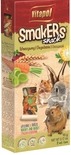 VITAPOL 1108 SMAKERS DLA GRYZONI WARZYWNY stanowi znakomite uzupełnienie codziennej diety małych zwierząt - dzięki swej specyficznej formie zaspokajają pomagają w ścieraniu stale rosnących siekaczy, a starannie dobrany skład sprawia, że są chętnie spożywane.
