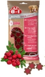 8IN1 PRZYSMAK MINIS LAMB & CRANBERRY 100 G mój psiak dostaje tą przekąskę , ponieważ jest ona pełnowartościowa, ma niską zawartość tłuszczu , jest bez dodatku cukru oraz bez glutenu, ale najważniejsze jest to , że ma w składzie żurawinę , która wspomaga pracę układu moczowego . Polecam , bo dobry produkt wysokiej jakości w niskiej cenie .