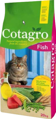 COTAGRO CAT FISH 20 KG to pełnowartościowa, sucha karma dla dorosłych kotów, z dużą zawartością rybnych protein.
