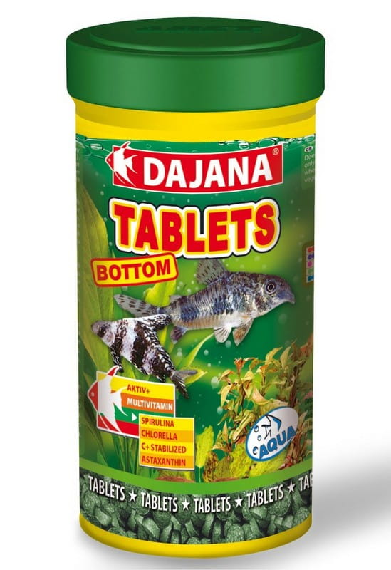 DAJANA TABLETS BOTTOM 100 ML to specjalny pokarm w tabletkach dla ryb żyjących na dnie akwarium. Zawiera spirulinę.