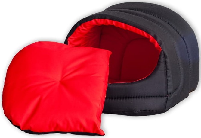 DINGO 28592 BUDA DLA KOTA NR 2 CZARNO / CZERWONA nadaje się również dla małego psa, posiada wymienny, dwustronny materac, który można łatwo prać i wymieniać w każdej chwili. Buda wykonana jest z kodury - materiału charakteryzującego się dużą wytrzymałością i łatwością w utrzymaniu - nie ulega on bowiem odkształceniom podczas prania.