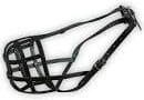 Wykonany z wysokiej jakości czarnej skóry , łączonej metalowymi nitami . Został specjalnie wyprofilowany , aby nie kaleczyć ani nie odparzać psa . Nie stwarza problemów w swobodnym oddychaniu . Zabezpiecza przed gryzieniem i zbieraniem nieczystości .