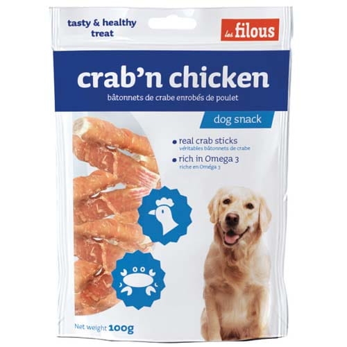 FILOUS PRZEKĄSKA Z KRABEM I KURCZAKIEM 100 G to doskonałe uzupełnienie diety psa, a także świetny sposób na nagradzanie. Wielkość przysmaku sprawia, że nadaje się on dla psów większych i mniejszych ras. Przekąska ta znakomicie oczyszcza zęby, masuje dziąsła i pozwala zachować higienę jamy ustnej.