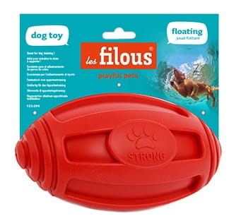 FILOUS ZABAWKA DLA PSA PIŁKA RUGBY to pływająca i cicha piłka doskonała do nauki aportowania .