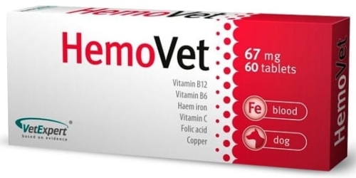 Jest preparatem dla psów z objawami niedokrwistości . Powodem anemii mogą być choroby inwazyjne i zakaźne , np. hemobartoneloza , babeszjoza , erlichioza , leptospiroza , parwowiroza itd., oraz zatrucia i reakcje uczuleniowe na użądlenia pszczół i os , a także zwyczajne zarobaczenie . Niektóre psy mają skłonności genetyczne do wystąpienia niedokrwistości autohemolitycznej . Częściej choroba ta występuje u pudli, owczarków staroangielskich , seterów irlandzkich i cocker spanieli . Wiek - 2-8 lat. Kilka razy częściej chorują suki . Główne objawy to wymioty , biegunki , osłabienie , nadwrażliwość na zimno , przyspieszony oddech i praca serca , bladość spojówek i śluzówek , spadek wagi ciała , osłabienie oraz apatia . Skład : stearynian magnezu .Dodatki : żelazo hemowe , miedź , witamina B6 , witamina B12 , kwas foliowy , witamina C . Dawkowanie : Psy - 1 tabletka na każde 10 kg masy ciała . Należy zapewnić zwierzęciu stały dostęp do świeżej wody.