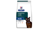 Doskonała karma stworzona specjalnie by zwalczać nadwagę u kotów cierpiących na cukrzycę . Wysoka zawartość L-karnityny i lizyny wspomagają spalanie tłuszczu . Nadwaga może powodować wiele nieprzyjemności u Twojego kota , ograniczając jego ruchliwość oraz zmniejszając długość życia . Podobnie jak u ludzi , także u kotów przyczyną nadwagi jest przyjmowanie zbyt wielu kalorii oraz niewielka ruchliwość . Hill's Prescription Diet Feline M/D to karma - dieta , która została stworzona specjalnie dla kotów chorych na cukrzycę oraz cierpiących na nadwagę . Specjalna formuła z małą zawartością tłuszczu i wysokim udziałem białek pomaga kotu zredukować wagę . Karma Hill's Prescription Diet Feline M/D jako jedyna posiada największą zawartość L-karnityny i lizyny by spalać tłuszcz i wspomagać utrzymanie masy mięśniowej . Przeciwwskazania : Kocięta, kotki w ciąży i laktacji, koty z przewlekłą niewydolnością nerek . Skład : roślinne ekstrakty białkowe , mięso i składniki pochodzenia zwierzęcego ( kurczak 13%) , oleje i tłuszcze , zboża , składniki pochodzenia roślinnego , minerały . Źródło węglowodanów : pszenica