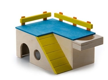 JK 33030 DOMEK Z BALUSTRADĄ 18 x11 x 10 CM to wykonany z drewna wysokiej jakości domek - idealne schronienie dla małych gryzoni. Domek posiada balustradę i karmidełko.