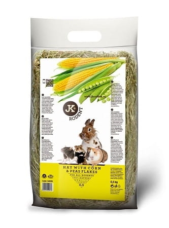 JK 34026 SIANO Z ŁUPINAMI GROCHU I KUKURYDZY 0,5 KG opakowanie zawiera sianko z naturalnych łąk, wzbogacone dodatkowo warzywami. Łupiny grochu i kukurydzy stanowią doskonałą i ulubioną przekąskę dla twojego przyjaciela.