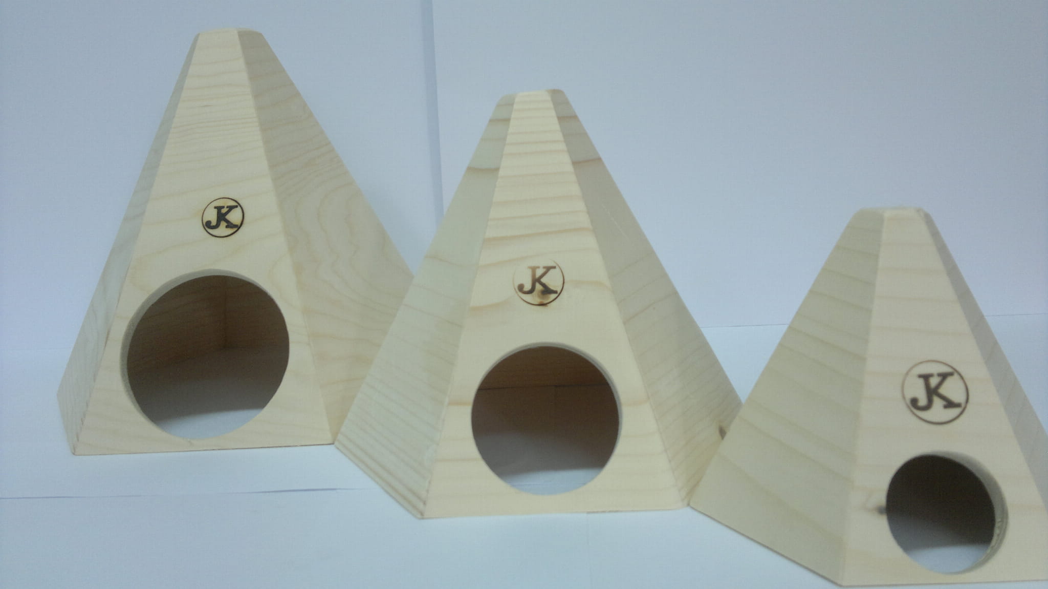 JKR - DOMEK TIPI DLA CHOMIKA to wykonany z drewna wysokiej jakości domek - schronienie dla chomików (na zdjęciu po środku).