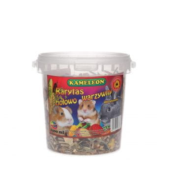 KAMELEON RARYTAS ZIOŁOWO - WARZYWNY DLA GRYZONI 3 L to pełnowartościowy pokarm z warzywami i ziołami dla gryzoni . Dobrane w odpowiednich proporcjach składniki zapewnią Waszym ulubieńcom wymagane ilości wartości energetycznych oraz witamin niezbędnych dla utrzymania ich w dobrej kondycji oraz zdrowiu .