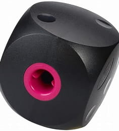 Wykonana z trwałego plastiku ABS , zapewnia atrakcyjną rozrywkę psu i zachęca go do aktywnej zabawy . Dostarcza wielu cennych bodźców . Wyzwanie stanowią wypadające ze środka kostki ziarenka karmy , Tempo wypadania ziarenek można regulować specjalnym pokrętłem . Rozmiar : 9 x 9 x 9 cm .