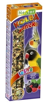 NESTOR KOLBA DLA ŚREDNICH PAPUG Z OWOCAMI LEŚNYMI 2 SZT. to niezwykły pokarm, którego wszystkie składniki zostały starannie dobrane zgodnie z potrzebami i upodobaniami Twojego ulubieńca. Jest doskonałym źródłem niezbędnych dla prawidłowego rozwoju organizmu witamin, mikro- i makroelementów. Kolba, dzięki stanowiącej jej trzon drewnianej listewce, pomaga ścierać przerosty dzioba. Ponadto ptaszki wyskubują ziarenka samodzielnie, podobnie jak ma to miejsce w naturalnym środowisku. „Zdobywanie pożywienia” zmienia się we wspaniałą zabawę i przynosi radość.