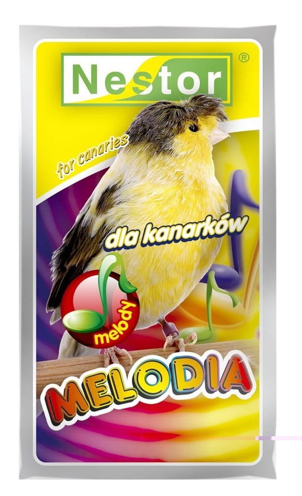 NESTOR "MELODIA" DLA KANARKÓW POBUDZAJĄCA DO ŚPIEWU 20 G zawiera mieszankę ziaren, z których 30% stanowią nasiona trawy afrykańskiej, które działają pobudzająco na kanarki. Podając ptaszkowi mieszankę zdopingujesz go do śpiewu i jego radosne trele będą Cię cieszyć przez siedem dni tygodnia.