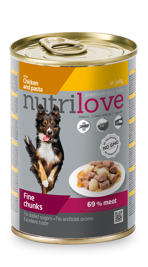 NUTRILOVE KAWAŁKI Z KURCZAKIEM I MAKARONEM W GALARETCE - PUSZKA DLA PSA 415 G