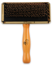 Przeznaczona do pielęgnacji okrywy włosowej - rozczesywanie sklejonej sierści . Dzięki stalowym , lekko wygiętym igłom doskonale sprawdzają się do rozczesywania splątanej sierści , kołtunów oraz wyczesywania martwego podszerstka . Gumowa poduszka amortyzuje nacisk dzięki czemu szczotki lepiej rozczesują włos i nie podrażnia skóry zwierzęcia . Plastikowe kulki na końcach igieł zabezpieczają dodatkowo przed podrażnieniem skóry . Ergonomiczny , drewniany uchwyt uławia rozczesywanie .