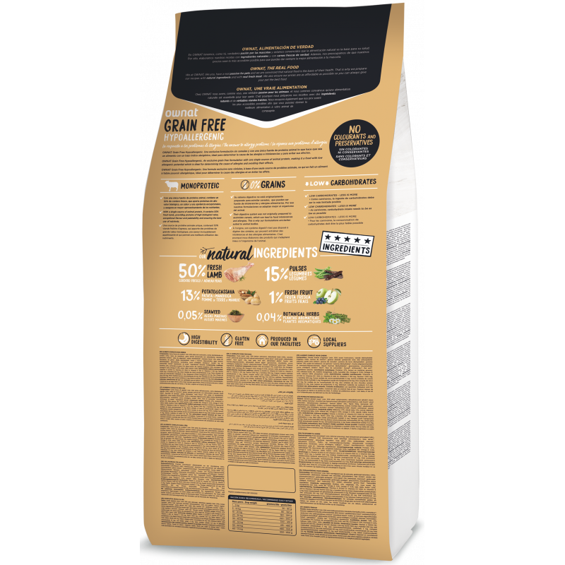 OWNAT HYPOALLERGENIC GRAIN FREE DOG LAMB 14 KG