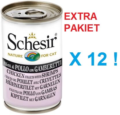 PAKIET 12 x Schesir puszka 140 g ( koty kurczak krewetki )