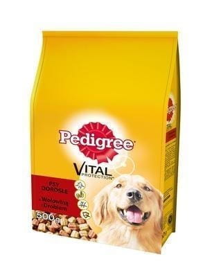 PEDIGREE SUCHY ADULT WOŁOWINA - DRÓB 500 G zaspokoi wszystkie potrzeby żywieniowe Twojego pupila . Pełnowartościowa i zbilansowana , sucha i bardzo smaczna karma dla dorosłych psów średnich ras , zawiera aż 18 % mięsa i produktów pochodzenia zwierzęcego ( w tym 4 % wołowiny w czerwonobrązowych granulkach i 4 % drobiu w beżowych granulkach ) i jest idealna na codzienne posiłki .