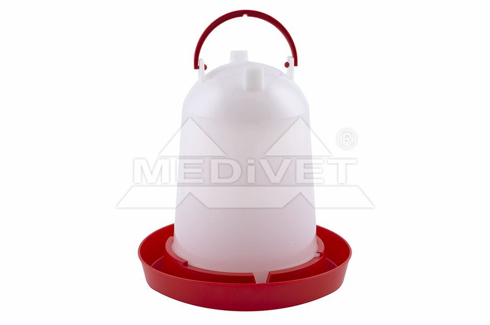 POIDŁO DLA DROBIU 15 L. ZAKRĘCANE Z RĄCZKĄ ( drób poidło ) - zakręcane poidło przeznaczone do pojenia wszystkich gatunków drobiu , m. in. kur , indyków , gołębi , kaczek , gęsi i ptactwa ozdobnego . Naczynie wykonane jest z wysokiej jakości materiałów : zarówno zbiornik , jak i miska są mocne , solidne oraz łatwe w czyszczeniu i dezynfekcji . Zbiornik jest przezroczysty , co ułatwia kontrolę poziomu wody . Posiada rączkę do podwieszania i przenoszenia poidła z miejsca na miejsce . Poidło posiada także dodatkową zakrętkę ( korek ) w misce , co umożliwia wlanie wody do poidła bez odkręcania miski . Miska jest w kolorze czerwonym .