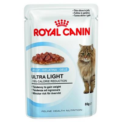 ROYAL CANIN CAT ULTRA LIGHT W GALARETCE 85 G to specjalistyczna formuła dedykowana dorosłym kotom cierpiącym na nadwagę , łącząca w sobie wysoką zawartość najlepszej jakości białka oraz błonnika , które wspierają w ukształtowaniu i utrzymaniu prawidłowej masy ciała przy jednoczesnym zachowaniu odpowiedniej tkanki tłuszczowej i mięśniowej . Włókna roślinne zapewniają zdrowe działanie układu pokarmowego i ułatwiają trawienie , przyspieszając eliminacje niestrawionych resztek pokarmu . Doskonały, starannie wyselekcjonowany smak ROYAL CANIN CAT ULTRA LIGHT W GALARETCE 85 G zaspokaja apetyt nawet najbardziej wybrednych pupili .