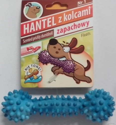 SUM HANTEL Z KOLCAMI NR 1 to zabawka unosząca się na wodzie, lekka i łatwa do chwytania. Pomaga psom ćwiczyć i utrzymywać zdrowe zęby. Ta gumowa zabawka doskonale nadaje się do wspólnej zabawy z ukochanym pupilem.