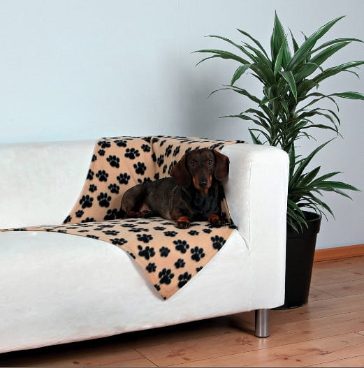 TRIXIE 37191 KOC BEŻ W CZARNE ŁAPKI 100 X 70 cm. - kocyk , który może być stosowany jako ochrona mebli przed zakłaczeniem i podrapaniem , lecz również jako wyściółka legowiska . Wykonany z flauszu .