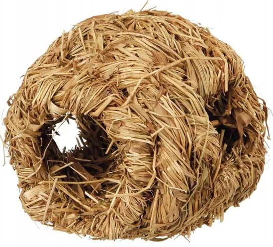 Plecione z trawy gniazdko dla gryzoni . Odpowiednia dla chomików , myszek , myszoskoczków i innych małych gryzoni . W 100% bezpieczne do gryzienia i jadalne ( zalecane jest jednak , aby wymienić zabawkę wówczas , gdy zwierzęta w zbyt dużym stopniu ją obgryzą ) .