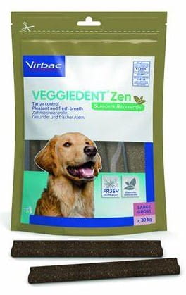 Wielofunkcyjny gryzak stomatologiczny przeznaczony dla psów wymagających codziennego wsparcia w efektywnej pielęgnacji zębów i łagodzeniu stresu . Zawiera L- teaninę - aminokwas występujący w zielonej herbacie , który łagodzi reakcje na stres , poprawia zdolność uczenia się i wykazuje działanie relaksujące . Gryzaki mają innowacyjny kształt litery Z , co ułatwia psu ich uchwycenie i żucie . Wyjątkowy kształt w połączeniu z rozmiarem i teksturą , ogranicza powstawanie płytki nazębnej i kamienia nazębnego , zwiększając tym samym skuteczność pielęgnacji zębów . Opakowanie zawiera 15 sztuk gryzaków .