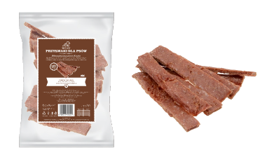 Bardzo pyszna przekąska z jagnięciną w kształcie pasków ( dość krucha bo mięso jest chude ) , która może posłużyć jako zachęta naszego pupila do nauki bądź nagroda ( treserki ) . Zapewne Wasz psiak na pewno nie będzie chciał przegapić takiego smakołyka - smaczka .