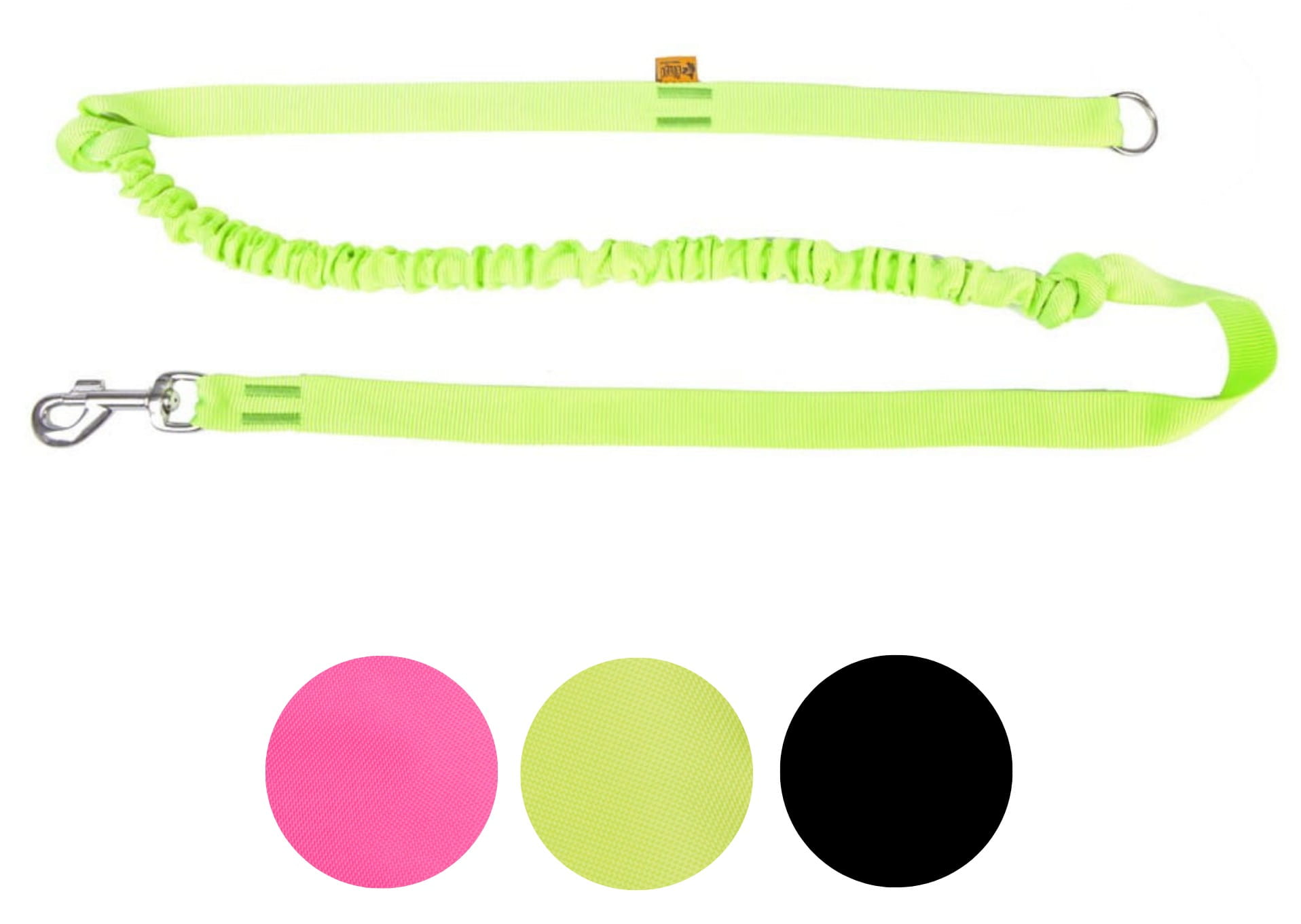 Nadaje się do biegania z psem , a w szczególności do przyczepienia do specjalistycznego pasa do biegania . Zapewnia komfort nawet przy dużym szarpnięciu . Smycz posiada bardzo długi amortyzator i jest wykonana z ekstra lekkiej i wytrzymałej taśmy poliamidowej . Dostępne kolory : różowy , zielony , czarny . Wymiary : 2,5 cm x 170 cm .