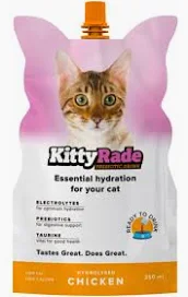 KITTYRADE NAPÓJ IZOTONICZNY Z PREBIOTYKAMI DLA KOTA 250 ml ( koty nawadnianie per os ) wygodny napój do regulacji elektrolitów niedoborów elektrolitowych spowodowanych np. biegunkami czy wymiotami po ich blokadzie i wycieńczniu