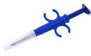 Produkt stworzony z myślą o elektronicznej identyfikacji zwierząt . Transponder o wymiarach 2,12 mm x 12 mm wbudowany jest w szklaną obudowę i umieszczony w igle do iniekcji o długości 32 mm , jest czipem jednorazowego użytku sterylnie zapakowany w blistrze . W pudełku znajduje się 25 sztuk strzykawek iniekcyjnych z transponderem .Do każdego opakowania dołączonych jest 8 naklejek z numerem kodu transpondera . Sposób użycia : Sprawdzić numer transpondera z numerem kodu umieszczonym na naklejce . Wyjąć strzykawkę z blistra . Zdjąć osłonę igły i zdecydowanym ruchem wprowadzić igłę pod skórę zwierzęcia , naciskając jednocześnie w końcowej fazie spust aplikatora .Wysunąć igłę spod skóry i zestaw wyrzucić . Sprawdzić czytnikiem wprowadzony transponder .