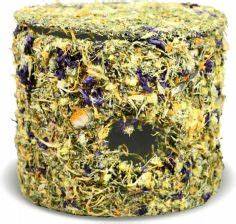 Wykonany w 100% z naturalnych materiałów : suszonych kwiatów oraz ziół . Zapewnia bezpieczny odpoczynek - nie zawiera niebezpiecznych ostrych elementów. Produkt sprawdza się jako kryjówka i miejsce spoczynku w klatkach i kojcach , służy zarówno do wspinania się po nim jak i do podgryzania .