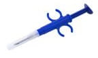 TRANSPONDER BLUE LABEL jest czipem jednorazowego użytku sterylnie zapakowany w blistrze . W pudełku znajduje się 25 sztuk strzykawek iniekcyjnych z transponderem .Do każdego opakowania dołączonych jest 8 naklejek z numerem kodu transpondera . Sposób użycia : Sprawdzić numer transpondera z numerem kodu umieszczonym na naklejce . Wyjąć strzykawkę z blistra . Zdjąć osłonę igły i zdecydowanym ruchem wprowadzić igłę pod skórę zwierzęcia , naciskając jednocześnie w końcowej fazie spust aplikatora .Wysunąć igłę spod skóry i zestaw wyrzucić . Sprawdzić czytnikiem wprowadzony transponder .